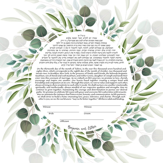 Eucalyptus Oasis: Elegant Watercolor Leafy Botanical Ketubah