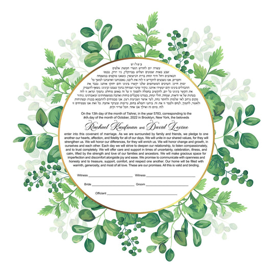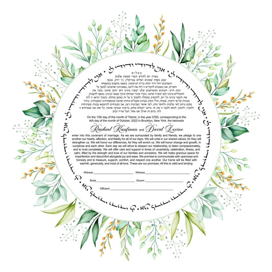 Herbal Modern Botanical Ketubah Greenery Leaves Ketubah Leafy Wreath Ketubah